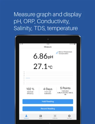Ervaar een vloeiende en intuïtieve interactie die vergelijkbaar is met die van uw favoriete applicaties, maar dan volledig gericht op wetenschappelijke precisie. De app biedt complete controle over alle functionaliteiten van de meter, inclusief begeleide kalibratieprocessen die complexe taken vereenvoudigen. Visualiseer cruciale parameters zoals pH, geleidbaarheid, zoutgehalte, TDS en temperatuur gelijktijdig, aangevuld met real-time grafieken, elektrode-efficiëntie en de meest recente kalibratiedatum. Dit uitgebreide overzicht stelt gebruikers in staat om onmiddellijk diepgaande inzichten te verkrijgen, waardoor het besluitvormingsproces wordt versneld en fouten worden geminimaliseerd. De app vult de moderne, gebruiksvriendelijke interface van de meter perfect aan.