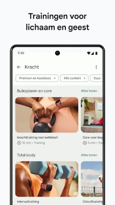 Voor een nog diepgaandere ervaring biedt Fitbit Premium exclusieve inzichten en begeleiding. Ontvang een dagelijkse herstelscore die aangeeft wanneer u klaar bent voor intense inspanning of juist rust nodig heeft, en krijg toegang tot een nog rijkere collectie trainingen en mindfulness-sessies onder leiding van experts. Verfijn uw slaapanalyse met een gepersonaliseerd slaapprofiel en ontdek inspirerende, gezonde recepten. Toegang tot de volledige Premium-contentbibliotheek vereist een abonnement, waardoor u het maximale uit uw welzijnsreis kunt halen met Fitbit.