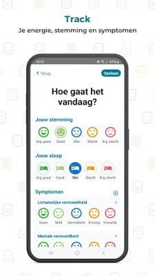 De kracht van Healthy Chronos zit in de eenvoud: in minder dan één minuut per dag leg je vast hoe je je voelt en welke activiteiten je onderneemt. Je kiest zelf welke specifieke klachten, zoals neuropathie of hoofdpijn, je wilt volgen om persoonlijke verbanden te ontdekken. Voeg notities toe voor extra context en personaliseer de app volledig naar jouw herstelproces. Voor nog diepere analyses biedt Healthy Chronos de mogelijkheid om naadloos te integreren met je Fitbit, Garmin of Apple Watch, waardoor je een compleet beeld krijgt van jouw lichamelijke respons en herstel.