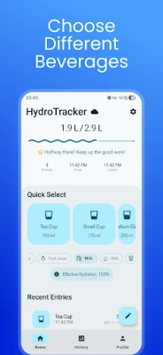Optimaliseer uw welzijn met HydroTracker, de intuïtieve applicatie die uw dagelijkse hydratatie transformeert. Deze zorgvuldig ontworpen tool helpt u moeiteloos uw vochtinname te beheren en duurzame drinkgewoontes te ontwikkelen. HydroTracker configureert persoonlijke hydratatiedoelen op basis van uw unieke profiel en maakt het registreren van uw inname kinderlijk eenvoudig, zowel met voorgedefinieerde hoeveelheden als met aangepaste volumes. Duik in gedetailleerde analyses en historische overzichten om patronen te ontdekken, waardoor u proactief kunt werken aan een consistentere en betere hydratatie voor een fittere levensstijl.