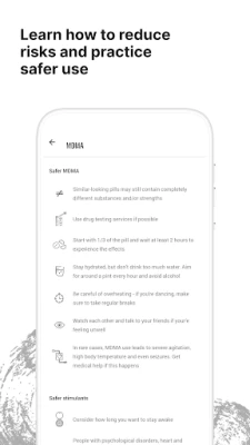 De kernfilosofie van KnowDrugs is geworteld in schadebeperking: het minimaliseren van de gevaren die gepaard gaan met recreatief middelengebruik. De app informeert niet alleen; het voorziet u van concrete strategieën om de mogelijke risico's van meer dan 200 substanties te mitigeren. Bovendien fungeert KnowDrugs als een vitale gids in noodsituaties, met advies over hoe te handelen bij bijvoorbeeld een 'bad trip' op een feest of festival. Het verbindt u ook met gratis, vertrouwelijke counselingdiensten die uw persoonlijke keuzes respecteren en u begeleiden bij het ontwikkelen van de juiste competenties indien u veranderingen wenst in uw consumptiepatroon.