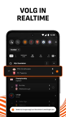 Met LiveScore ben je altijd razendsnel op de hoogte van elke sportieve ontwikkeling. Beleef de spanning van live sportuitslagen, cruciale doelpunten en beslissende rode kaarten, direct geleverd voor een breed scala aan wedstrijden en disciplines. Of het nu gaat om de dynamiek van de Eredivisie, de intensiteit van de Premier League, de glans van de UEFA Champions League, of de precisie van tennis, LiveScore zorgt ervoor dat je geen enkel moment mist. Pas je instellingen moeiteloos aan om alleen die wedstrijden te volgen die voor jou het meest tellen, met alle benodigde statistieken binnen handbereik.