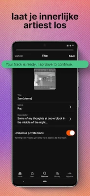 Bij SoundCloud staat de artiest centraal. Door jouw streams worden onafhankelijke makers direct ondersteund via Fan-Powered Royalties, zodat zij kunnen blijven innoveren en hun muziek met de wereld kunnen delen. Ervaar SoundCloud gratis met toegang tot een breed scala aan muziek en onbeperkte skips. Voor een nog rijkere beleving kies je voor SoundCloud Go of Go+, waarmee je reclamevrij kunt luisteren, tracks offline kunt bewaren en toegang krijgt tot hoogwaardige audio en exclusieve content voor DJ-integraties. Of je nu onderweg bent met je Wear OS smartwatch of thuis op je Android TV, de wereld van muziek ligt aan je voeten.