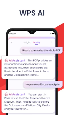 Zeg vaarwel tegen tijdrovend leeswerk met de innovatieve ChatPDF-functie, waarmee WPS AI moeiteloos lange documenten doorzoekt en samenvattingen, overzichten of zelfs vertalingen op maat biedt. Stel eenvoudig vragen en ontvang direct antwoorden, waardoor uw interactie met complexe PDF's intuïtiever wordt. Bovendien maakt de revolutionaire AI-gedreven OCR-technologie een einde aan handmatige data-invoer, door gescande documenten te verwerken en waardevolle inzichten te ontsluiten, waardoor uw dataverwerking radicaal vereenvoudigt. Dit alles is naadloos geïntegreerd in WPS Office, de complete kantoorsuite die de basis vormt voor al uw documentbehoeften op uw Android-apparaat.